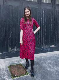 The MilkyMoon Coral Leopard Print Breastfeeding Midi Dress comes with mid sleeves and discreet hidden zips for stylish yet comfortable breastfeeding.