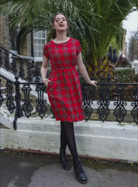 The Knee Length Breastfeeding Dress - Red Tartan Cotton