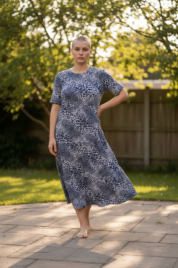 The Midi Breastfeeding Dress - Grey Leopard Cotton
