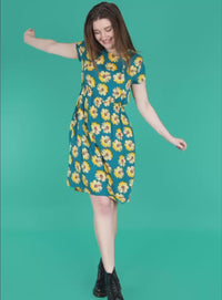 The Knee Length Breastfeeding Dress - Blue Sunflower Cotton